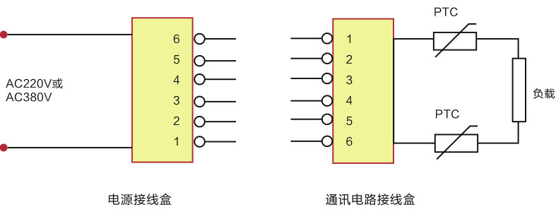 6、在空调安装过程中,误将AC220V或AC380V电源接入了通讯电路中,因通讯电路大都在5V-24V,高电压一旦侵入通讯电路中的许多电子元件将被烧坏击穿。为预防破坏现象发生,在通讯电路输入端的火线和零线中各加入一个过流保护PTC热敏电阻器,达到接错线时快速保护,调整接线后空调恢复正常工作。见下图。